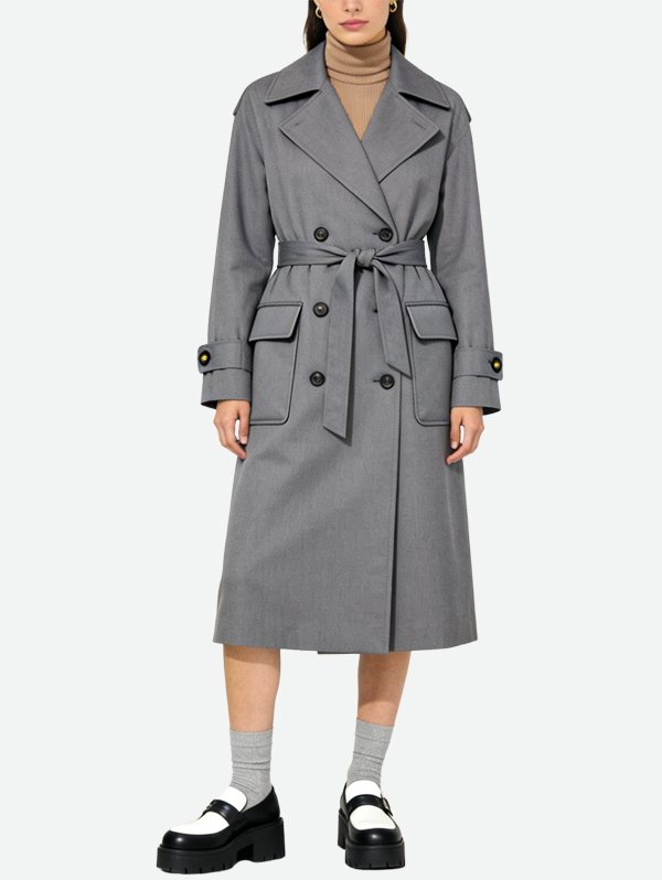 Women’s Lapel Belted Waist Casual Versatile Trench Coat