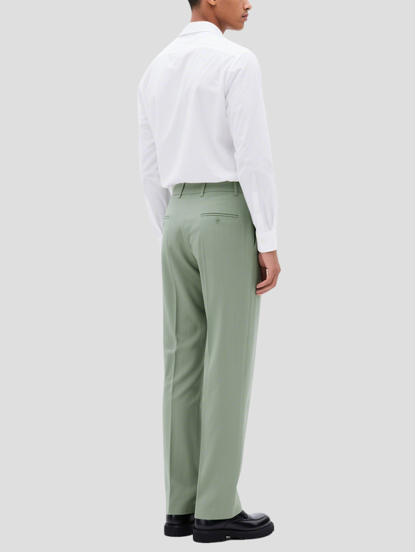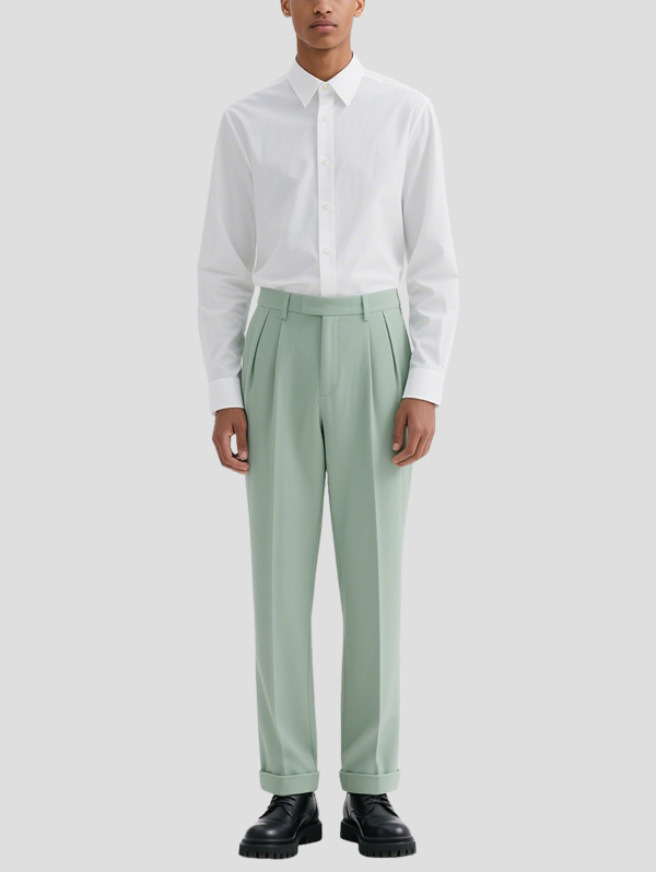 Sage Green Men’s Pleated Suit Pants Smart Casual Attire