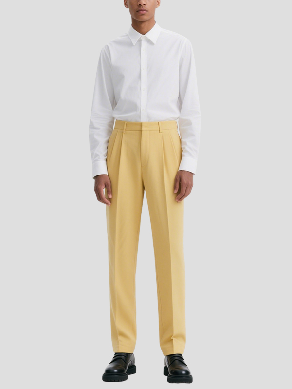 Pale Yellow Pleated Men’s Dress Pants Fresh Formal Trousers