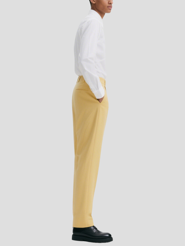 Mustard Yellow Pleated Men’s Suit Pants Formal Trousers