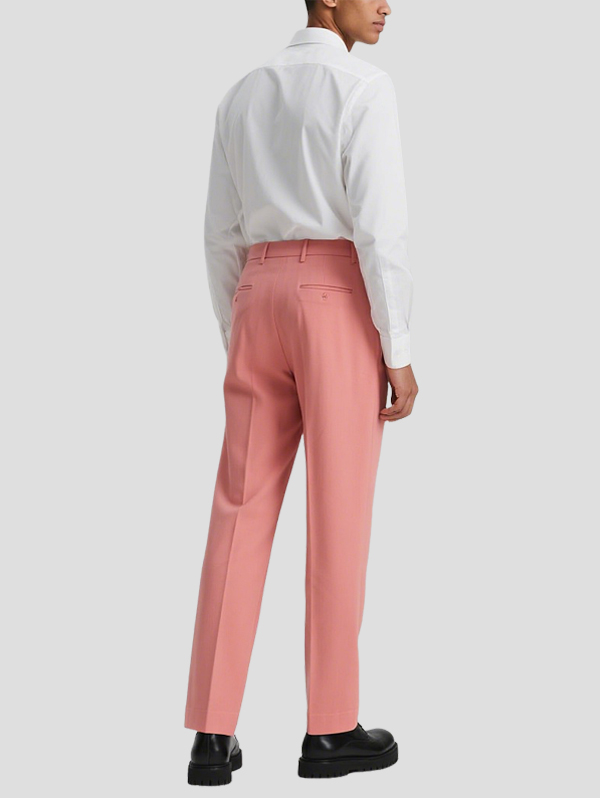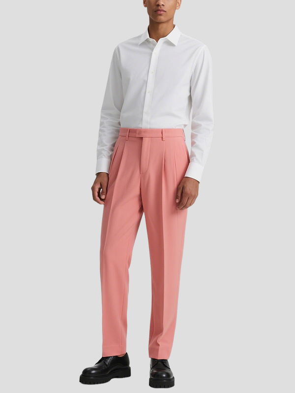 Coral Pink Men’s Pleated Dress Trousers Modern Formal Pants