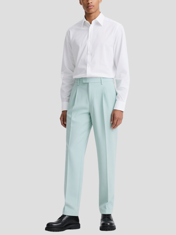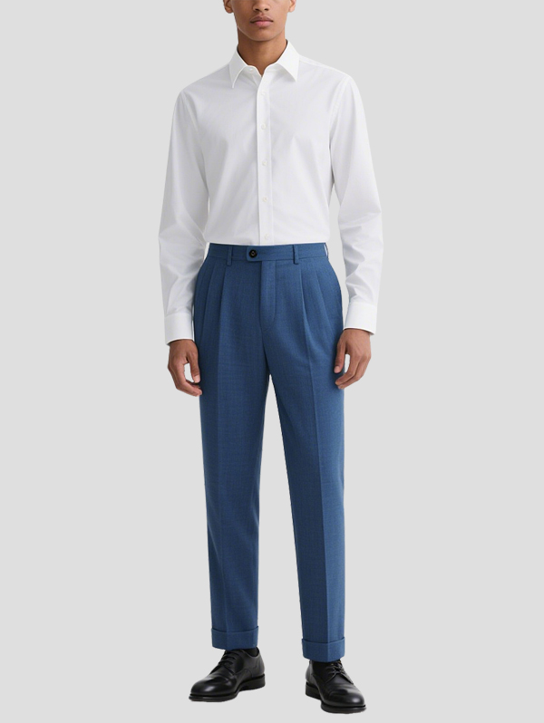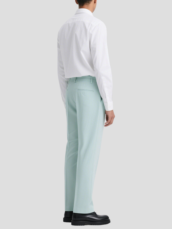 Material: 65% Polyester, 32% Viscose, 3% Spandex Weight: Medium-weight with structured drape Feel: Smooth and breathable with slight stretch for all-day comfort Stretch: Moderate — offers flexibility without sagging Waistband: Fixed waistband with belt loops Length: Full-length, designed to pair seamlessly with dress shoes or loafers Style: Perfect with a…
