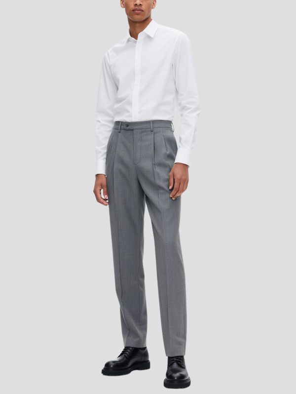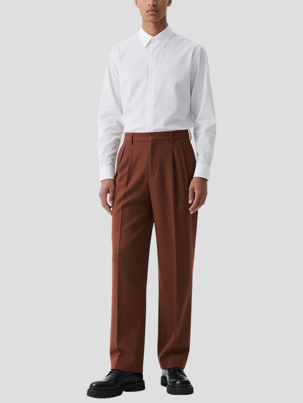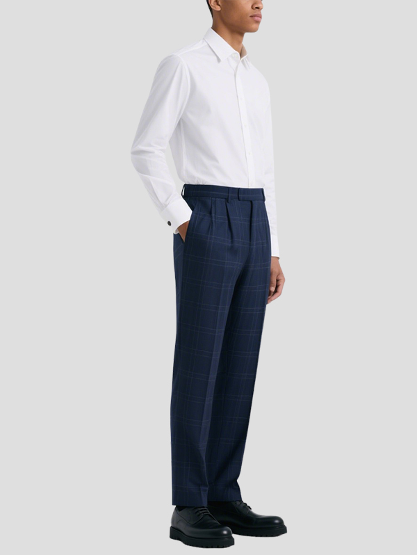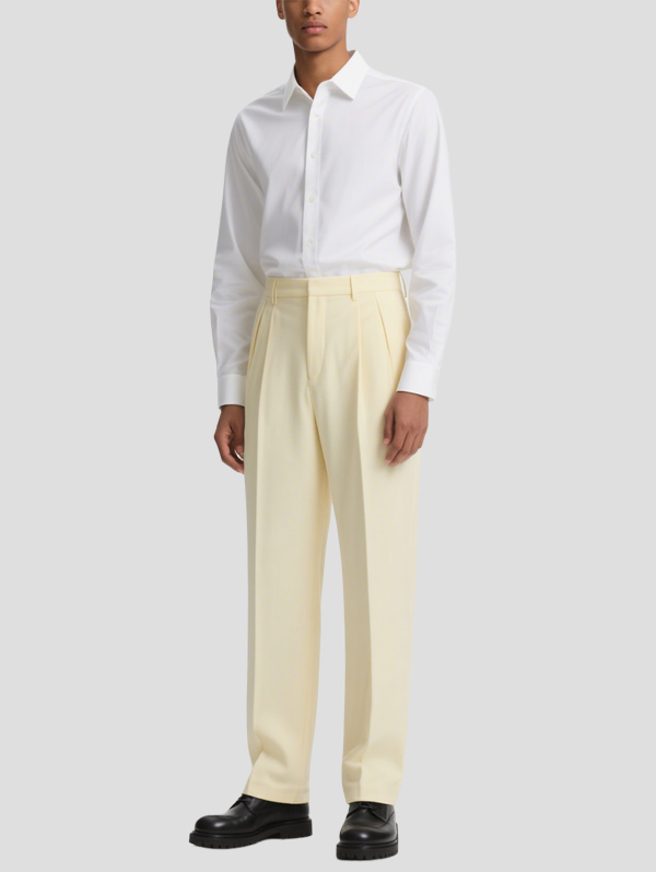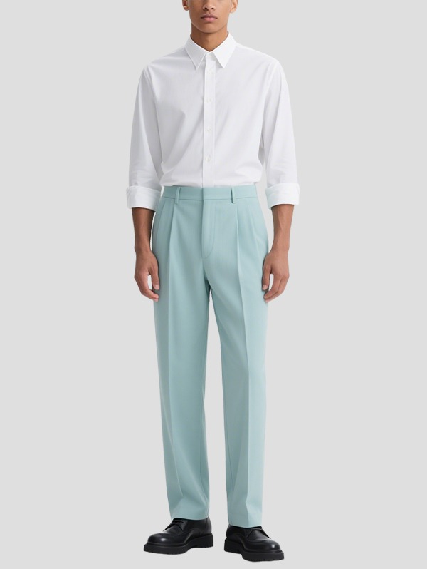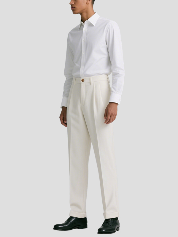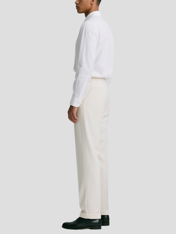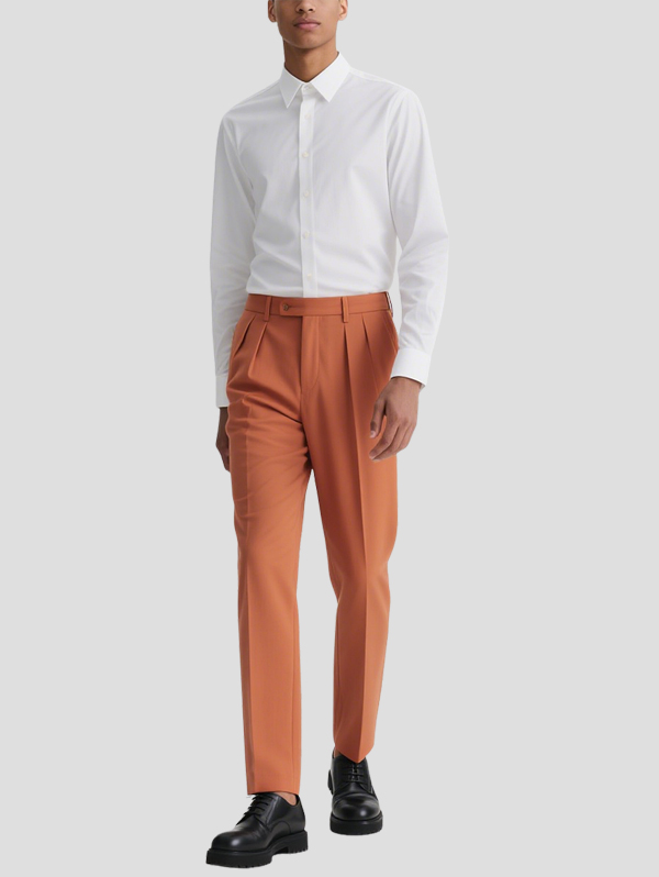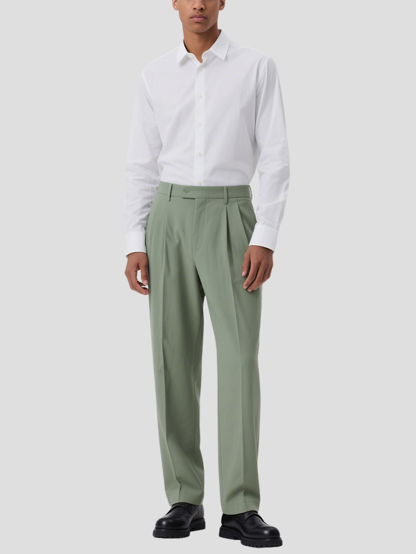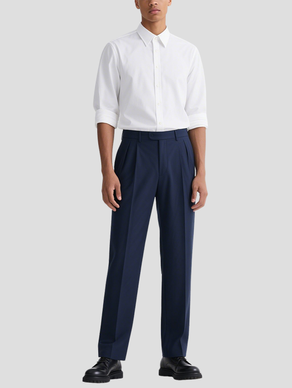 Material: 65% Polyester, 32% Viscose, 3% Spandex Weight: Medium-weight with structured drape Feel: Smooth and breathable with slight stretch for all-day comfort Stretch: Moderate — offers flexibility without sagging Waistband: Fixed waistband with belt loops Length: Full-length, designed to pair seamlessly with dress shoes or loafers Style: Perfect with a…