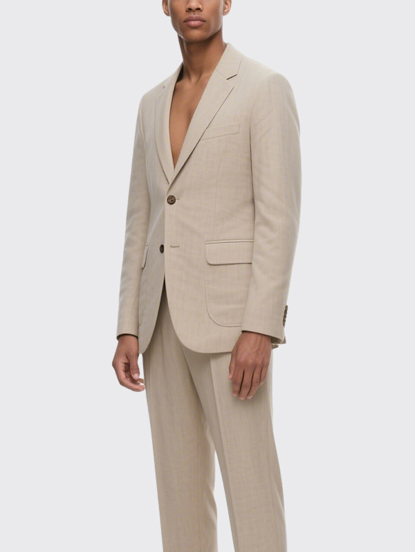 Beige Single Breasted Men’s Suit Jacket Elegant Formal Blazer