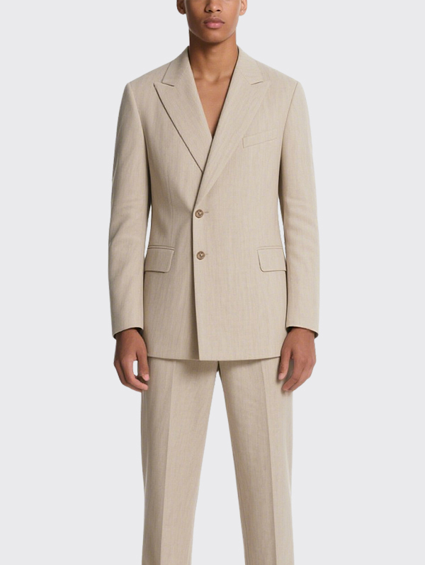 Beige Double Breasted Men’s Blazer Stylish Formal Jacket