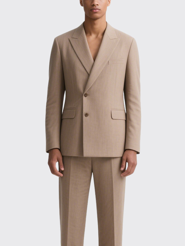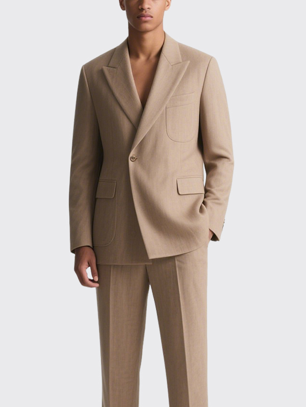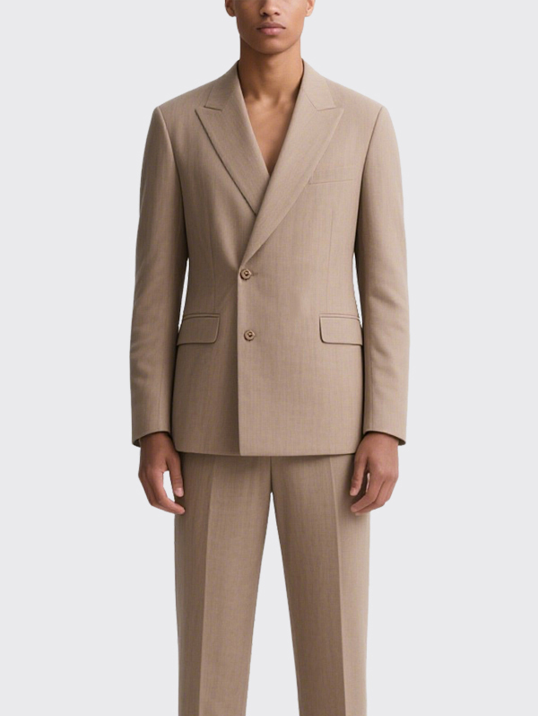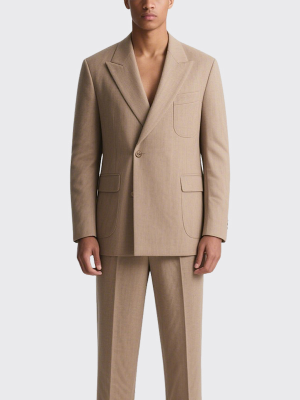 Beige Double Breasted Men’s Suit Jacket with Flap Pockets