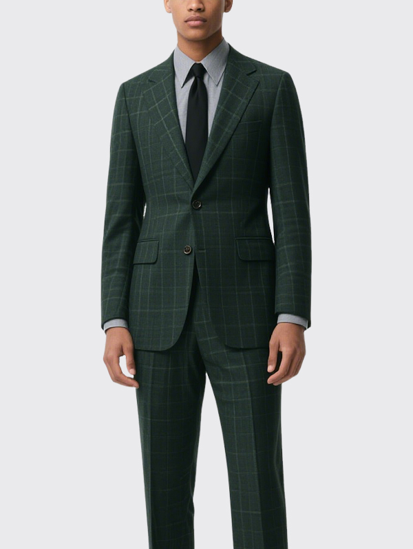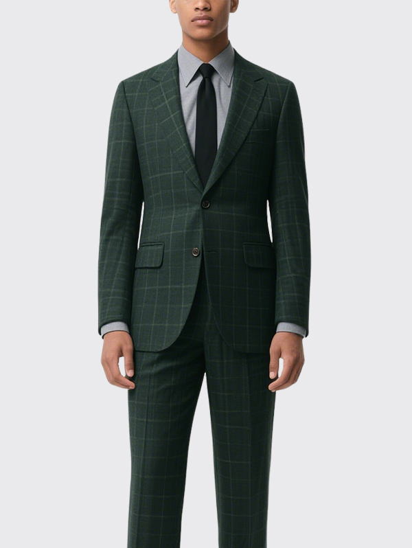 Green Plaid Single Breasted Men’s Suit Jacket Formal Business Blazer