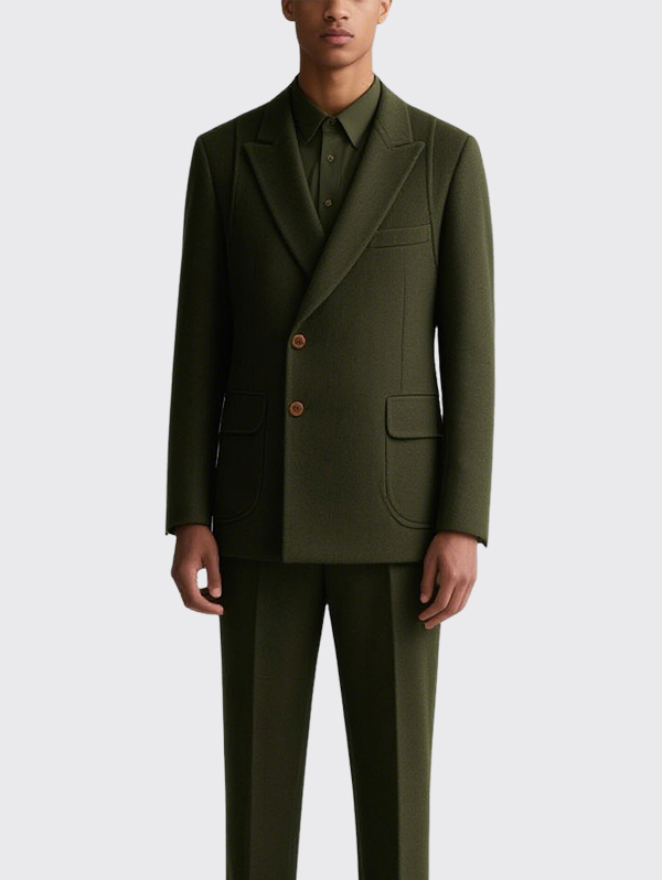 Olive Green Double Breasted Men’s Suit Jacket Trendy Formal Blazer