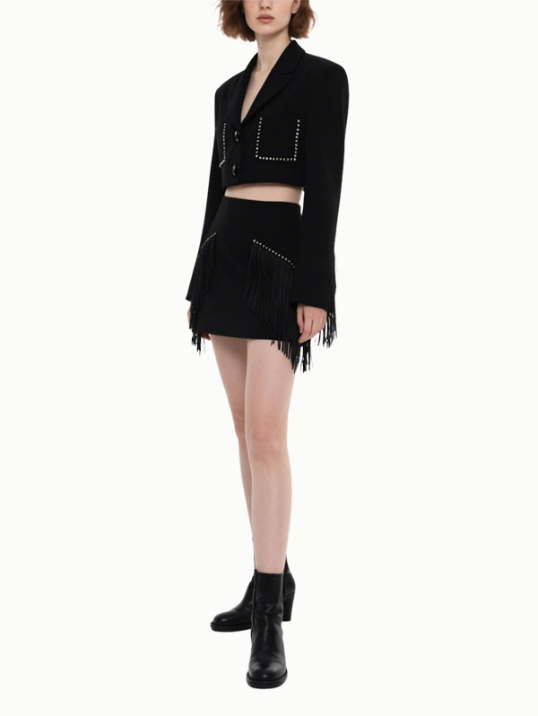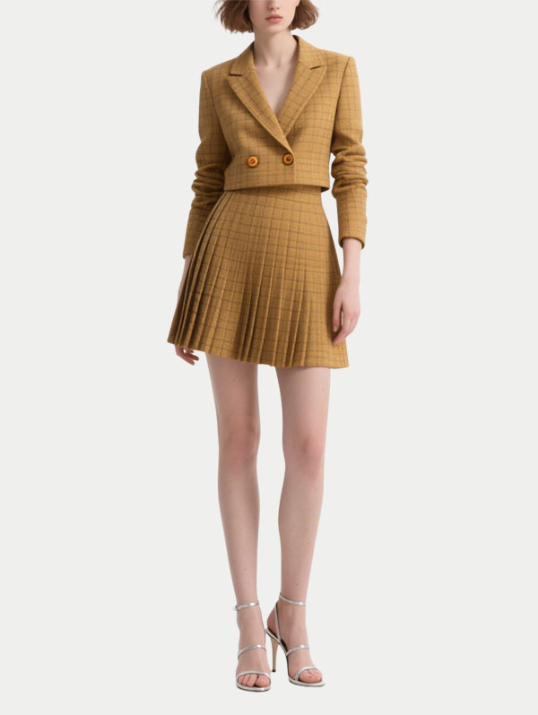 Premium Fabric:• Shell: 65% Polyester, 30% Viscose, 5% Spandex• Lining: 100% PolyesterThis fabric offers a luxurious handfeel, excellent drape, and natural wrinkle resistance, ensuring you look sharp from dawn to dusk. Flattering Fit: The mini skirt is designed to sit high on the waist, elongating your legs and pairing perfectly…