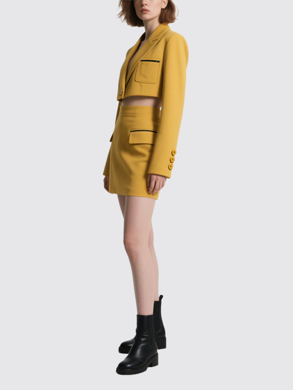 Premium Fabric:• Shell: 65% Polyester, 30% Viscose, 5% Spandex• Lining: 100% PolyesterThis fabric offers a luxurious handfeel, excellent drape, and natural wrinkle resistance, ensuring you look sharp from dawn to dusk. Flattering Fit: The mini skirt is designed to sit high on the waist, elongating your legs and pairing perfectly…
