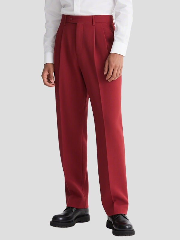 Burgundy Pleated Men’s Dress Pants Formal Office Trousers