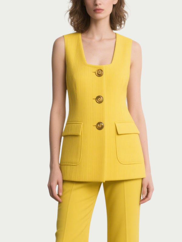 This women’s summer vest is single-breasted and sleeveless. This women’s business casual suit allows for ease of movement and better breathability than long-sleeved suits, ensuring comfortable and cool summer wear.