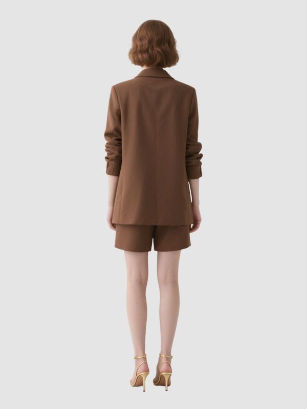 The women’s two-piece suit shorts set exudes elegance and professionalism, with long sleeves with buttons and solid shorts, perfect for business meetings, presentations, or any formal occasion.