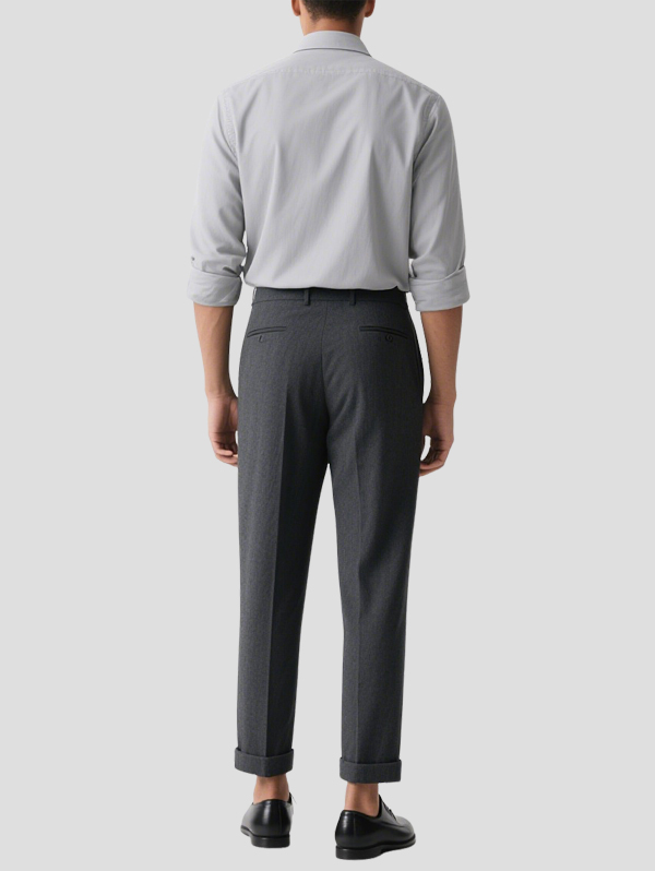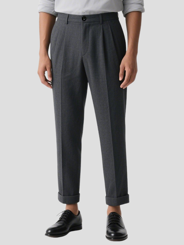 Grey Pleated Men’s Pants Modern Tailored Trousers