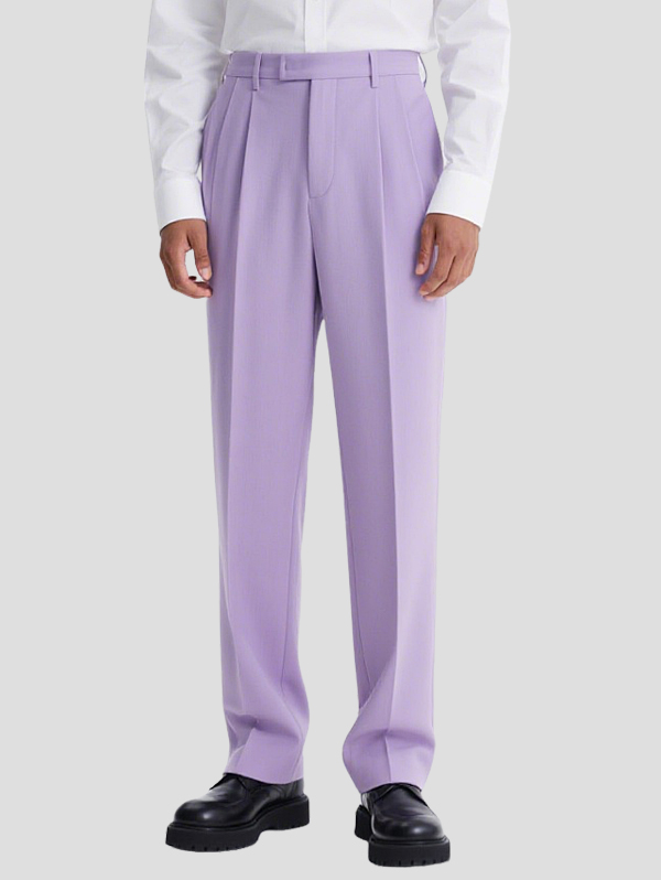 Lavender Pleated Men’s Dress Trousers Trendy Formal Attire