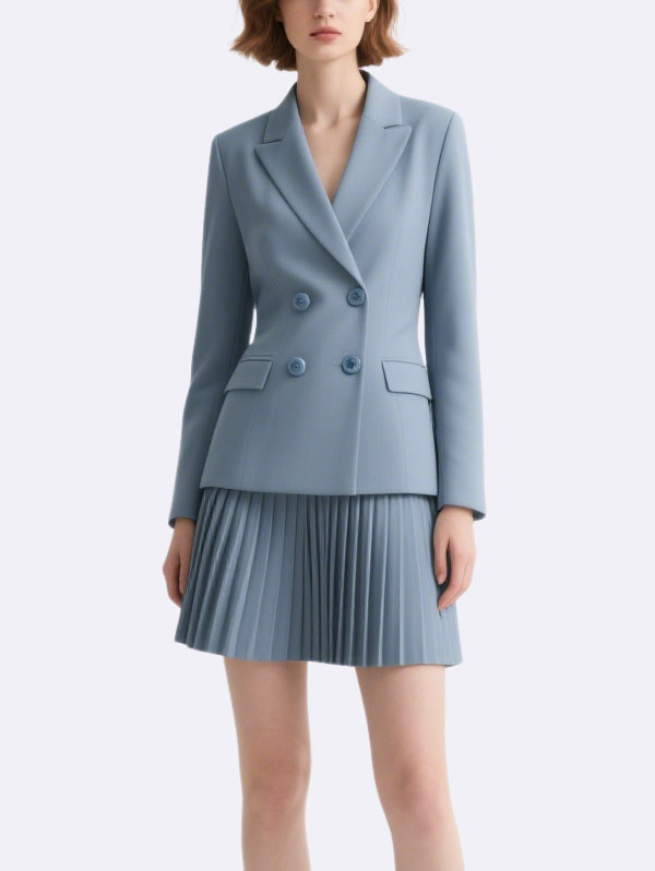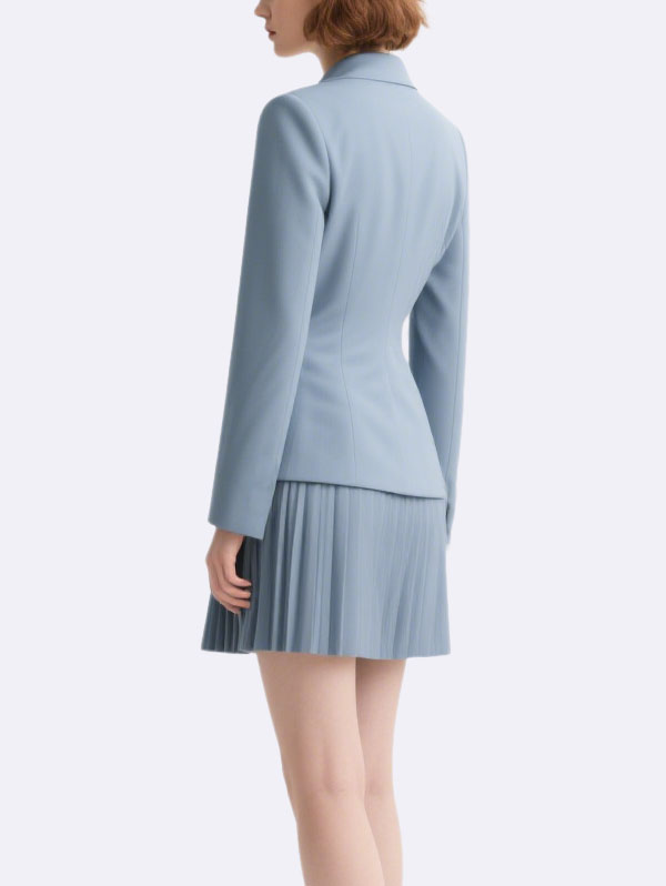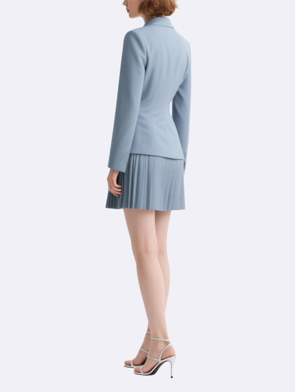 Light Blue Double Breasted Blazer Set Pleated Skirt