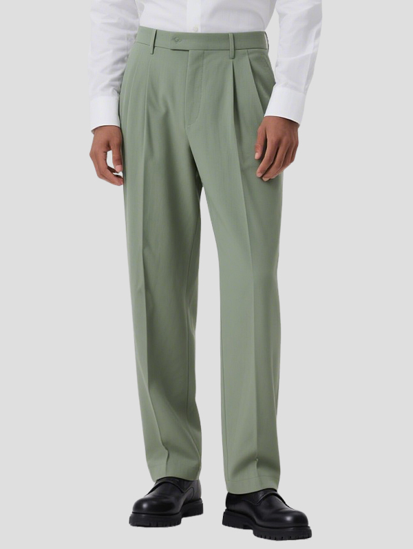 Light Green Pleated Men’s Suit Pants Smart Casual Attire