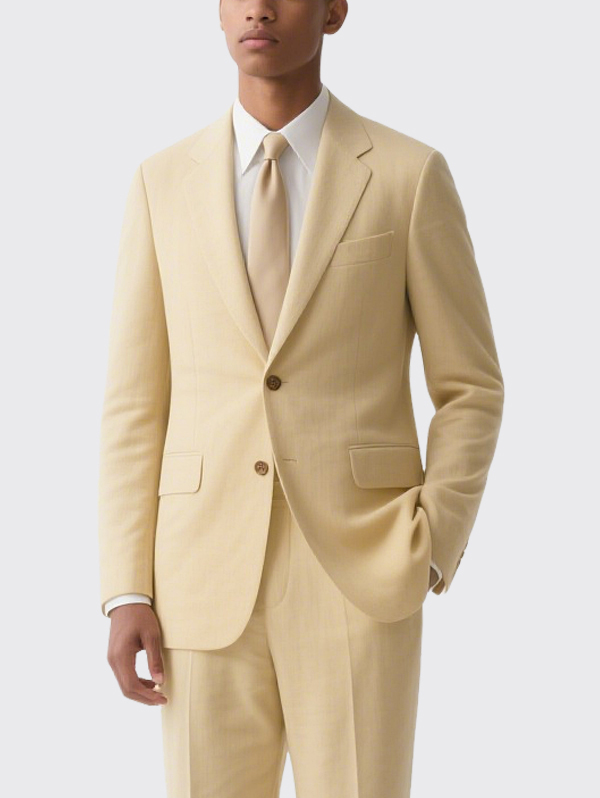 Light Yellow Single Breasted Men’s Suit Jacket Elegant Formal Wear