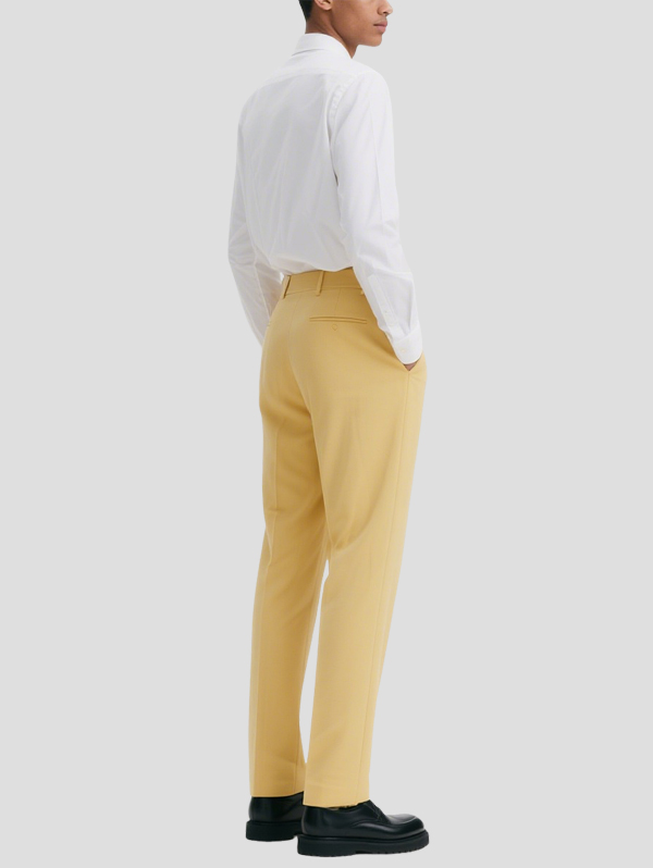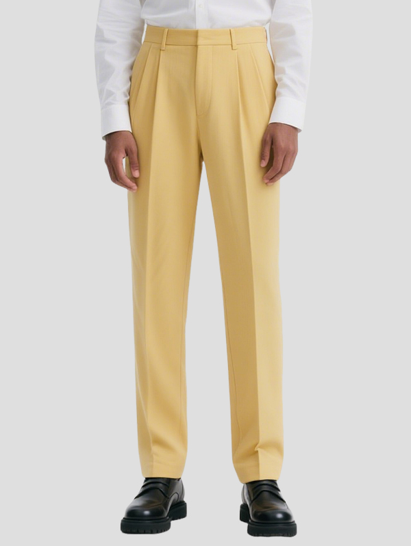 Mustard Yellow Pleated Men’s Suit Pants Formal Trousers