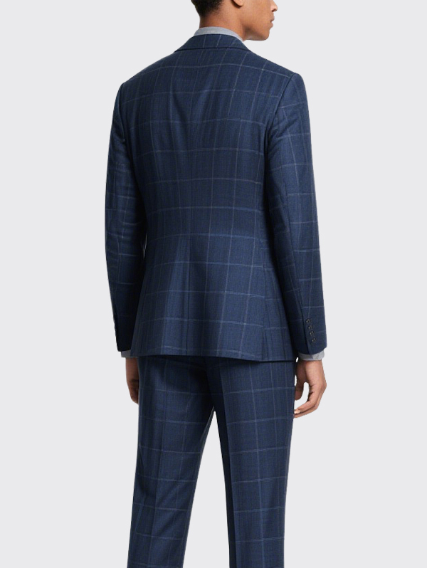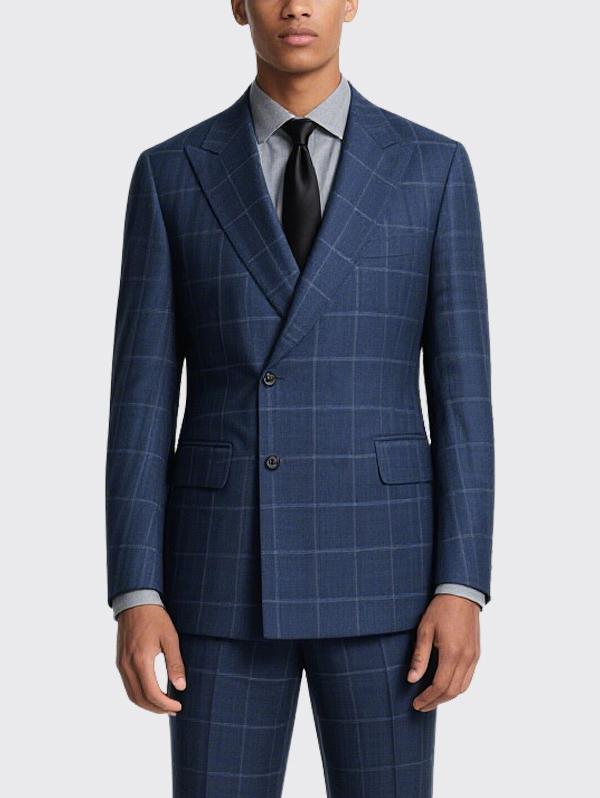 Navy Plaid Double Breasted Men’s Blazer Sophisticated Formal Jacket