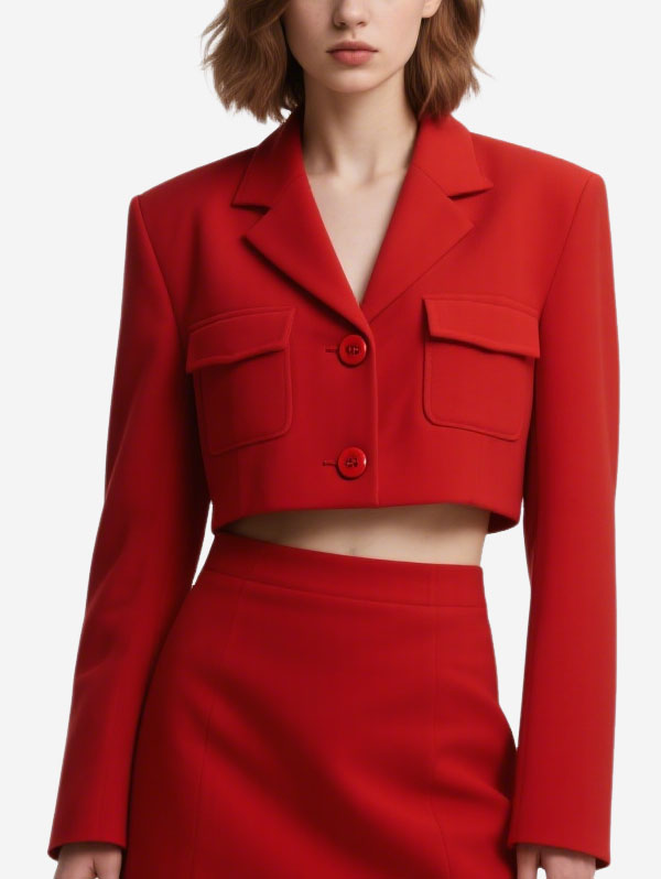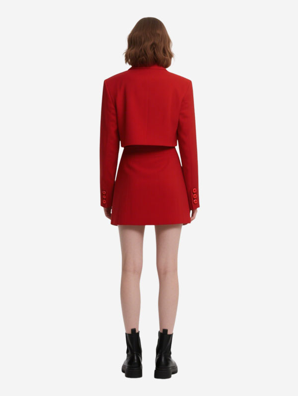 Red Crop Blazer and Skirt Set Two Button & Pocket