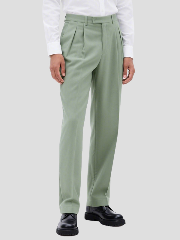 Sage Green Men’s Pleated Suit Pants Smart Casual Attire