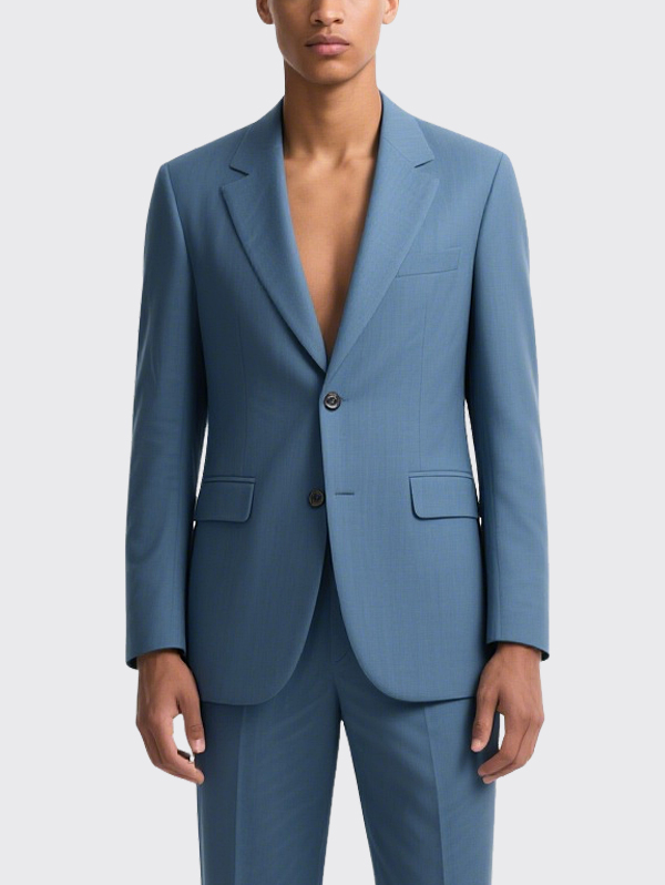 Solid Blue Single Breasted Men’s Blazer Smart Casual