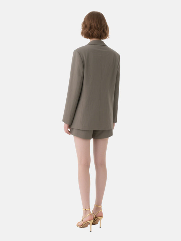 The women’s two-piece suit shorts set exudes elegance and professionalism, with long sleeves with buttons and solid shorts, perfect for business meetings, presentations, or any formal occasion.