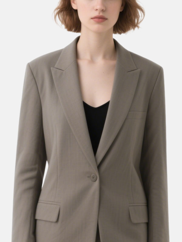 Add a touch of sophistication to your look with this long-sleeved suit jacket. It features a classic design with a slim fit that accentuates your silhouette, making you look elegant and capable.