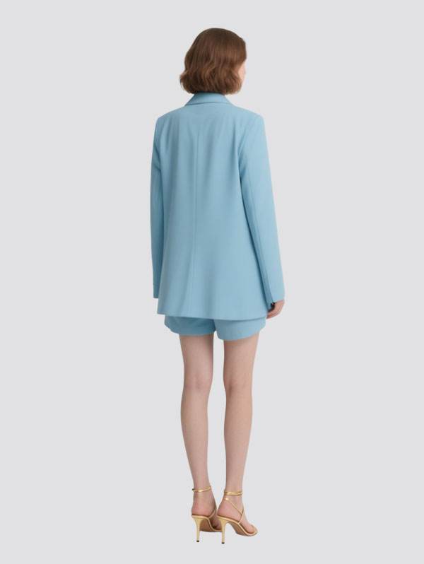 The women’s two-piece suit shorts set exudes elegance and professionalism, with long sleeves with buttons and solid shorts, perfect for business meetings, presentations, or any formal occasion.