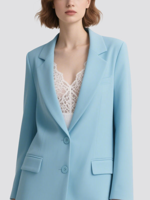 Add a touch of sophistication to your look with this long-sleeved suit jacket. It features a classic design with a slim fit that accentuates your silhouette, making you look elegant and capable.