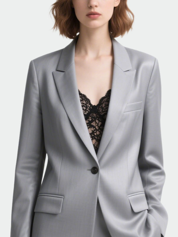Add a touch of sophistication to your look with this long-sleeved suit jacket. It features a classic design with a slim fit that accentuates your silhouette, making you look elegant and capable.