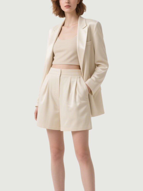 The women’s two-piece suit shorts set is easy to style for different occasions. Pair it with a shirt and heels for a formal look or pair it with a simple top and flats for a casual yet professional look.