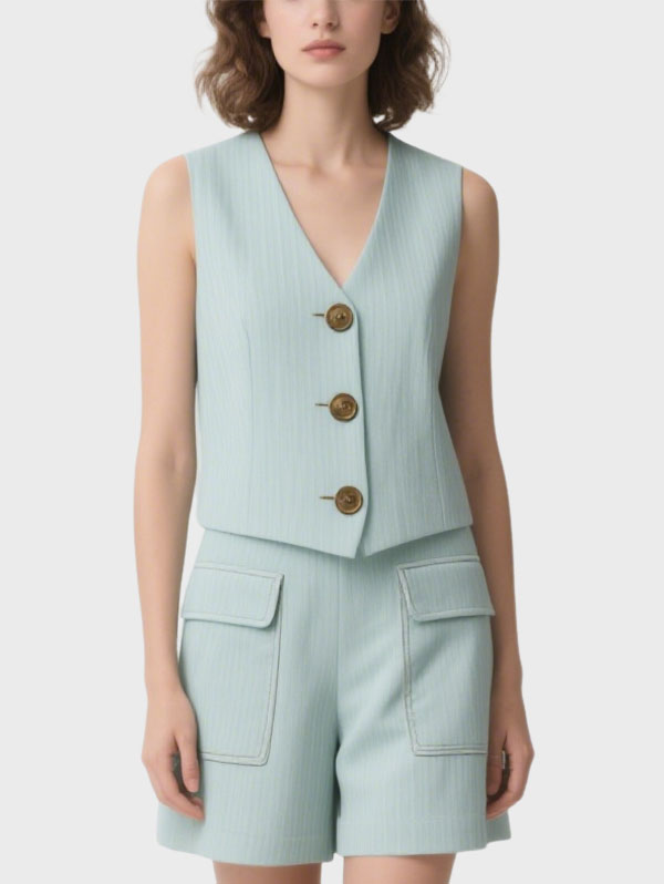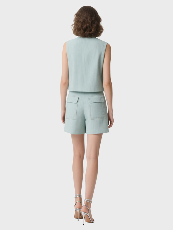 Women’s sleeveless top, exquisite and practical buttons, summer solid color women’s shorts, comfortable elastic back waist, practical two side pockets.