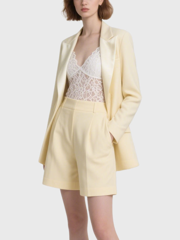 The women’s two-piece suit shorts set is easy to style for different occasions. Pair it with a shirt and heels for a formal look or pair it with a simple top and flats for a casual yet professional look.