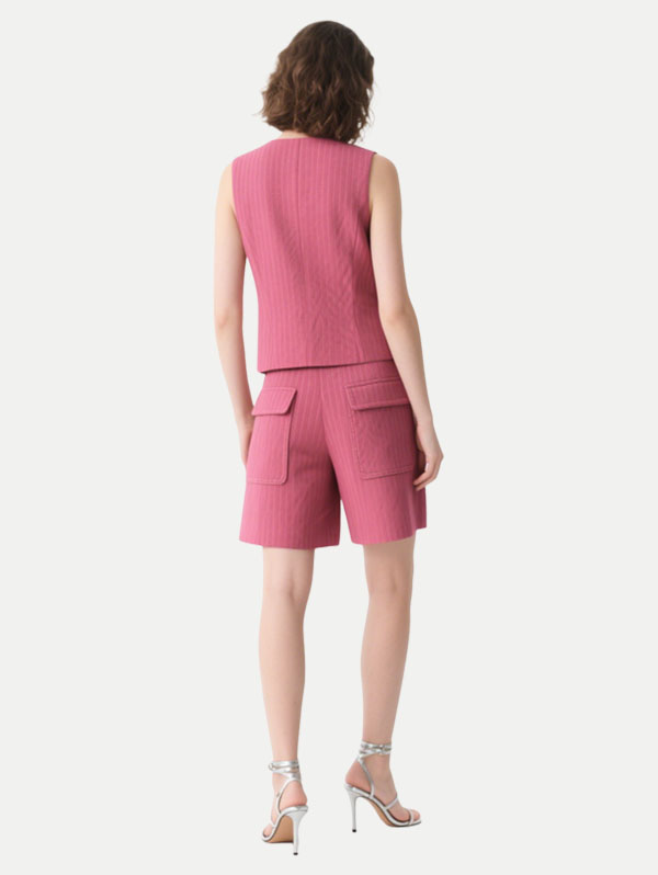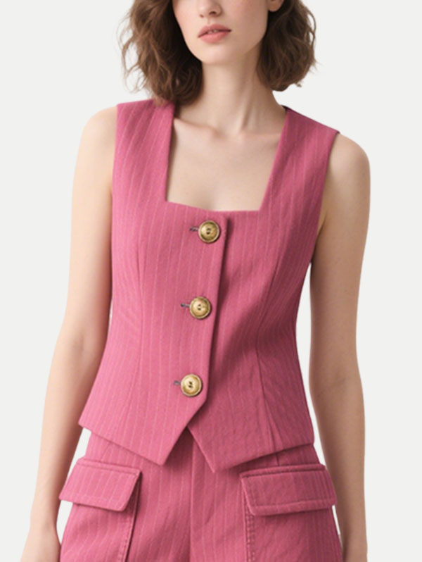 Women’s sleeveless top, exquisite and practical buttons, summer solid color women’s shorts, comfortable elastic back waist, practical two side pockets.