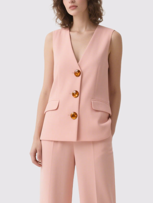 This women’s summer vest is single-breasted and sleeveless. This women’s business casual suit allows for ease of movement and better breathability than long-sleeved suits, ensuring comfortable and cool summer wear.