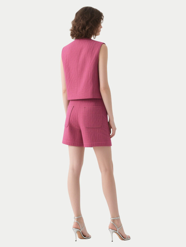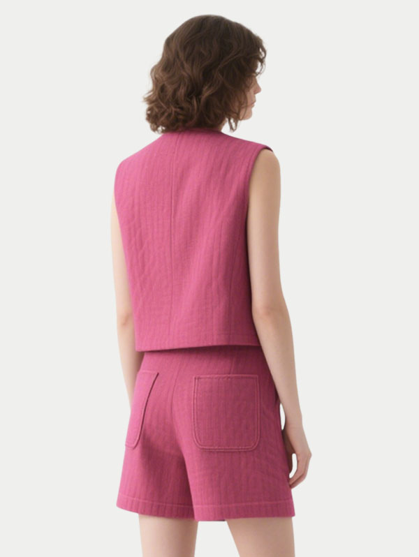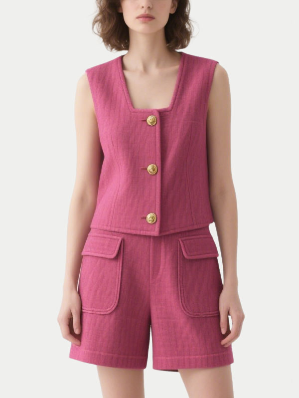 Women’s sleeveless top, exquisite and practical buttons, summer solid color women’s shorts, comfortable elastic back waist, practical two side pockets.