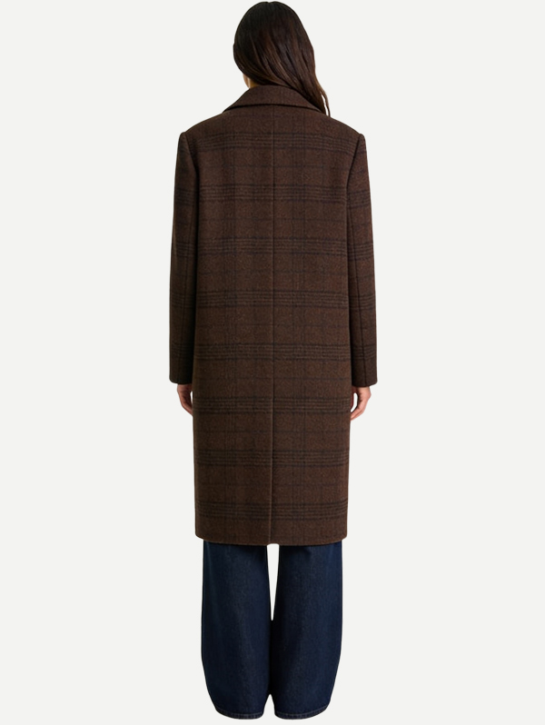 Crafted from a wool blend, this coat combines a soft touch with a sturdy, structured fabric, providing lightweight yet consistent warmth in cold weather without feeling bulky.