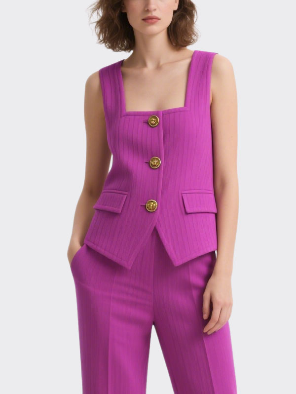 This women’s summer vest is single-breasted and sleeveless. This women’s business casual suit allows for ease of movement and better breathability than long-sleeved suits, ensuring comfortable and cool summer wear.