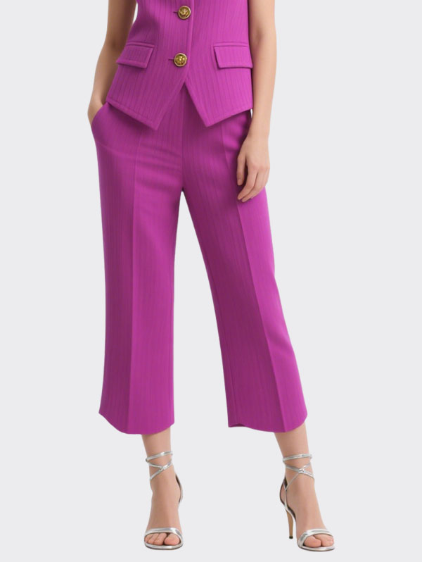 Our two-piece trousers and matching capri pants feature a high waist, elasticated back waist, wide trouser legs and two pockets. This women’s summer two-piece trousers are versatile and can be paired with a variety of tops to create different looks.